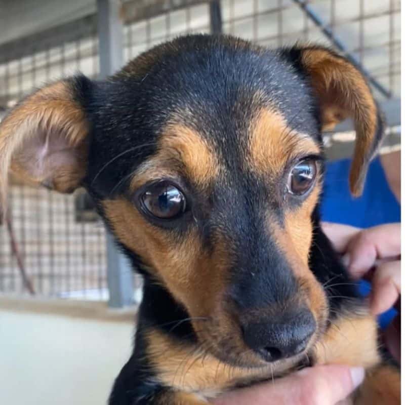 Dit kleine meisje is ook één van de schattige pupjes die wij weg konden halen van een verschrikkelijke plek. Ze is in een paar weken