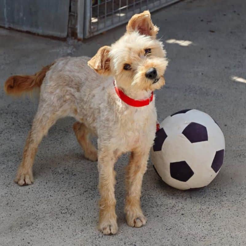 Spiky wacht… op iemand die hem nooit meer loslaat. In de perrera zat hij stil te wachten… alsof hij al wist dat niemand hem kwam
