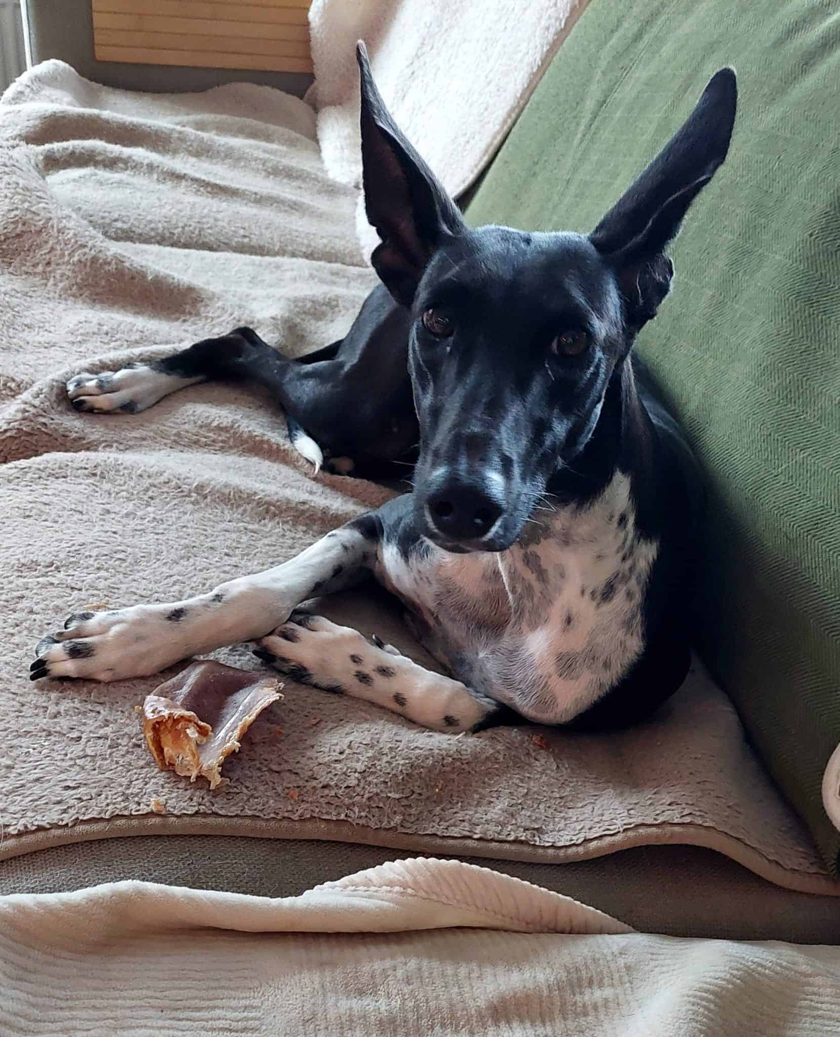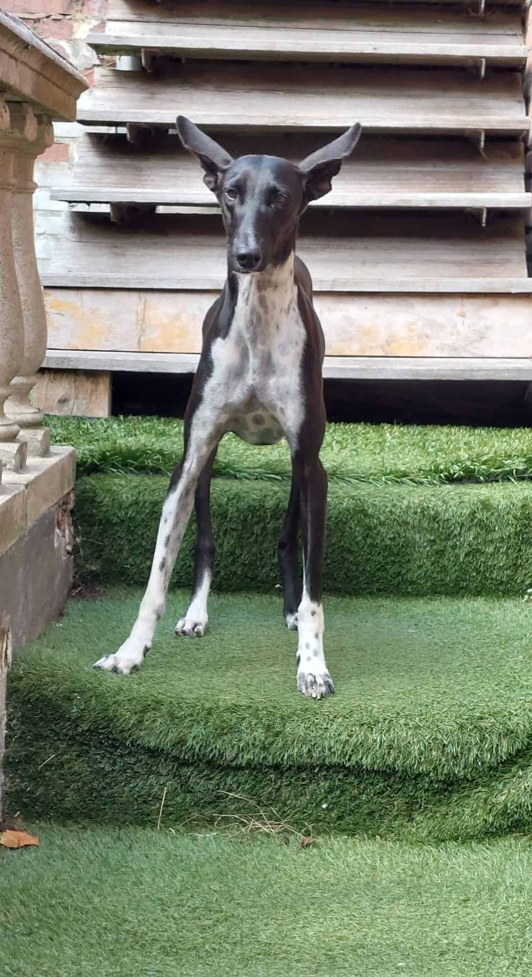 Gala – een bijzondere dame met een hart van goud. Gala is een prachtige zwart-witte Podenco, elegant, slim en gevoelig. Ze verblijft momenteel in een liefdevol en ervaren opvanggezin, waar ze voorzichtig leert dat mensen ook zacht kunnen zijn en hier laten ze haar vertrouwen in mensen en zelfvertrouwen groeien. Ze is nog wat eenkennig en kiest haar mensen zorgvuldig. Niet iedereen krijgt meteen een plekje in haar hart, maar wie dat wél krijgt… die heeft een vriendin voor het leven. Gala geeft zich dan met volle overgave – loyaal, liefdevol en ontzettend trouw. Ze houdt van rennen, spelen en genieten van vrijheid, maar ook van rust en harmonie. Een stabiel hondenmaatje aan haar zijde helpt haar de wereld met meer zelfvertrouwen tegemoet te treden, daarom zoeken we een thuis waar al een stabiele hond aanwezig is. Samen met een andere hond kan ze al een paar uurtjes alleen zijn en ze sloopt niks! Vuurwerk? Geen probleem voor deze stoere dame – Gala laat zich niet zomaar van de wijs brengen! Ze zoekt een speciaal thuis met liefde, geduld en begrip. Een plek waar ze zichzelf mag zijn, op haar tempo, met mensen die haar écht zien en begrijpen dat ze een hele zachtaardige aanpak nodig heeft. Want Gala is geen doorsnee hond – ze is een parel voor wie haar weet te waarderen.