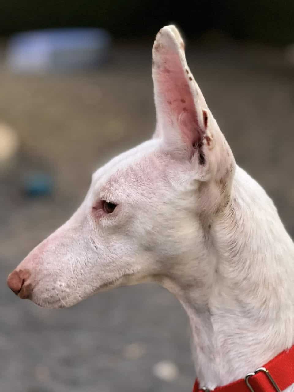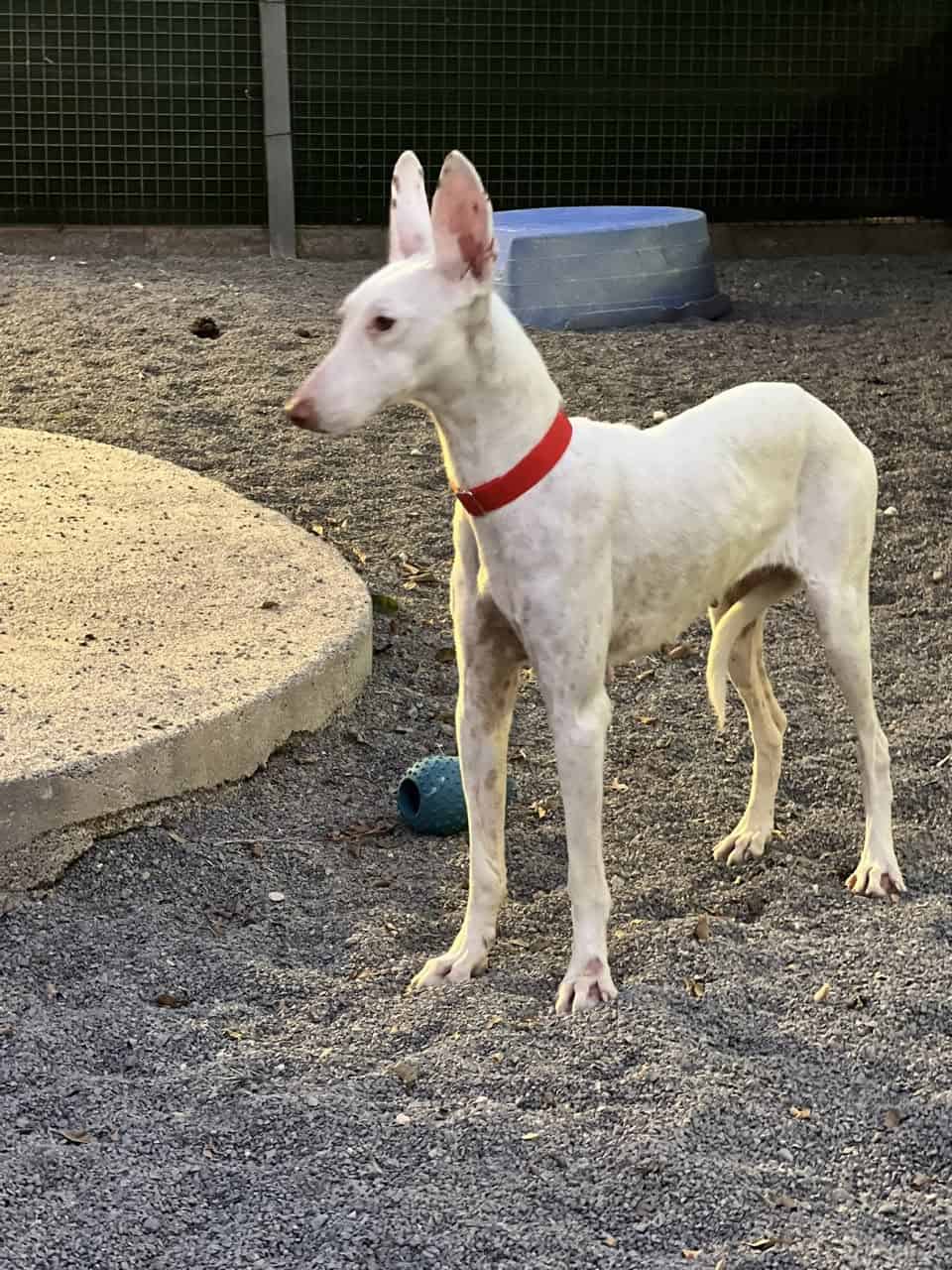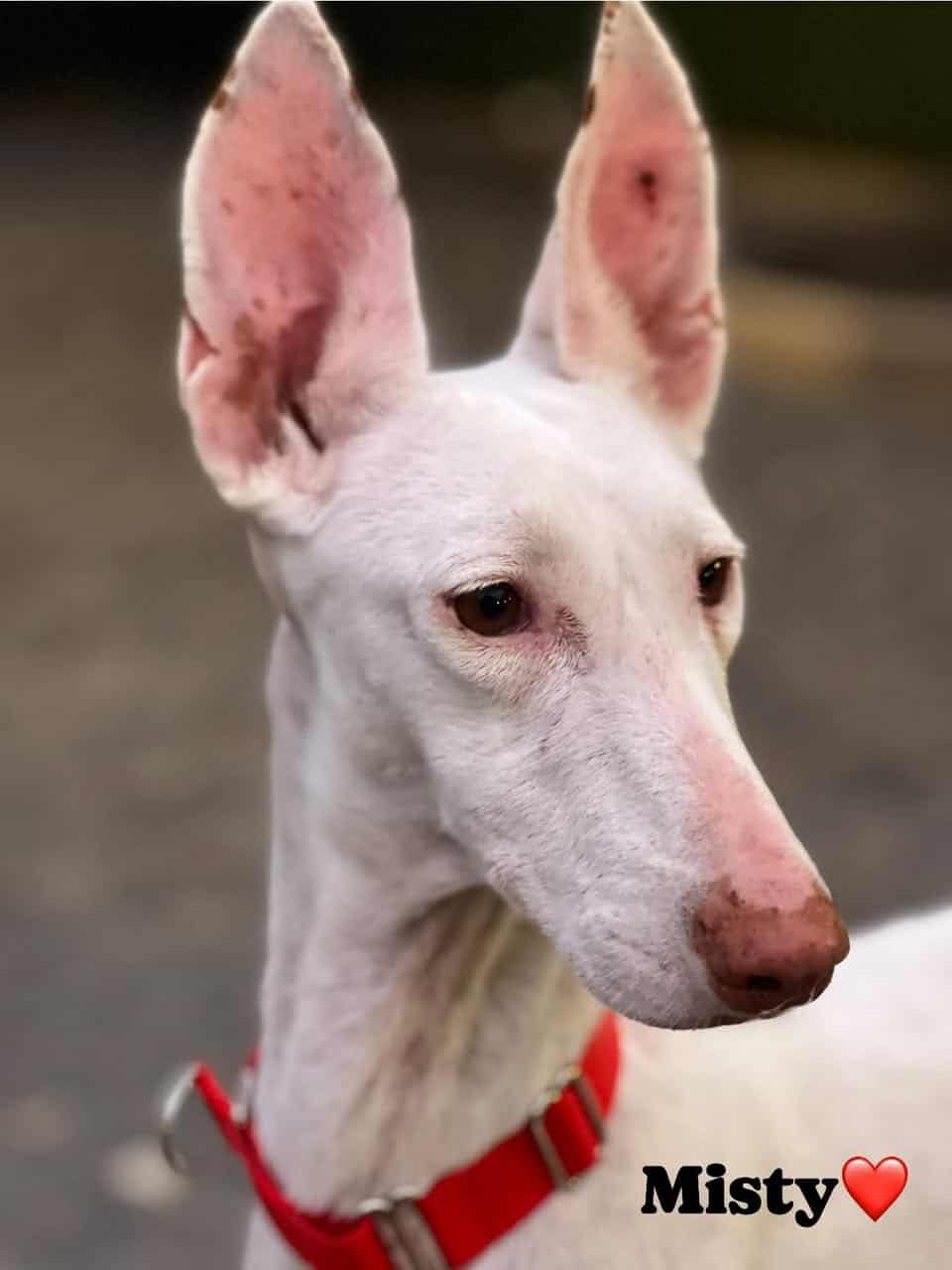 MISTY was niet goed genoeg voor de jacht… dat was uiteindelijk haar redding! Maak kennis met knappe Misty, een prachtige podenca van 5 jaar jong. Ze werd door een jager afgedankt omdat ze niet goed jaagde, waarschijnlijk omdat ze doof is. Maar lieve Misty hoort met haar hart, en dat klopt vol liefde. Ze is ontzettend lief, sociaal en dol op mensen én kinderen. Knuffelen kan ze dan ook als de beste. Spelen doet ze ook erg graag en ze lijkt nergens bang voor te zijn. Ze gedraagt zich gewoon als elke andere hond en functioneert prima in een roedel. Een lief hondenmaatje zou ze geweldig vinden, maar het belangrijkste is een warm thuis waar ze mag zijn wie ze is. Misty is vijf jaar jong, ze is een middelmaatje van 14 kg met een schofthooogte van 54 cm. Ze is gesteriliseerd en volledig getest op Middellandse Zeeziekten Wie geeft deze bijzondere dame haar gouden mandje en laat haar voelen dat ze wél goed genoeg is? Lieve MISTY geeft je er heel veel voor terug!
