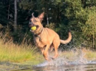 Hij is een enorme knuffelbeer. Een dikke knuf of lekker gekriebel over zijn koppie? Daar smelt hij van. Achter een balletje aanrennen vindt hij geweldig en ja hoor, hij brengt hem ook netjes terug.