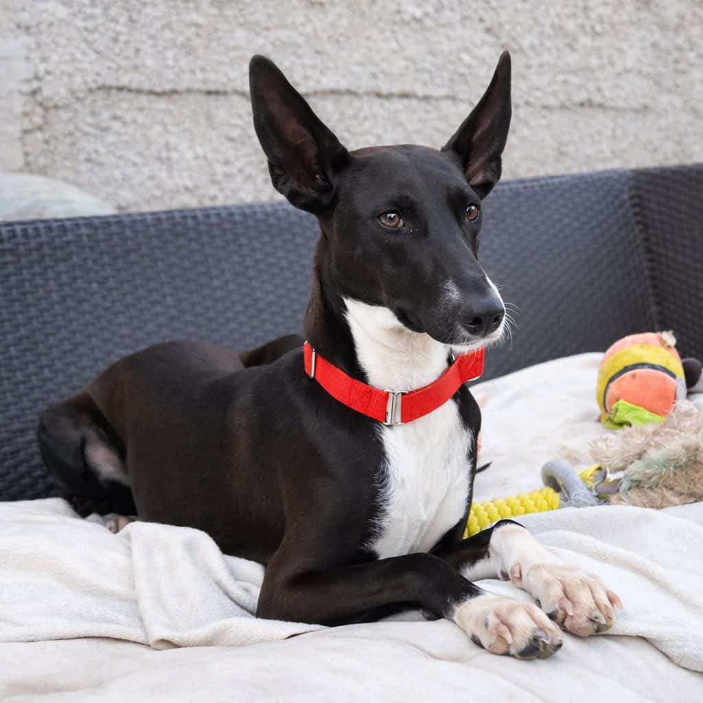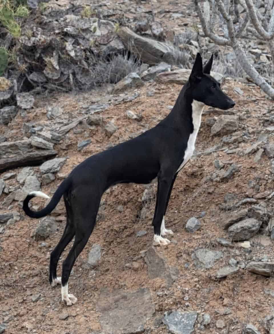 Talía is een echte Podenca, nieuwsgierig, speels en stiekem een beetje ondeugend. Ze verzamelt haar knuffels alsof het schatten zijn. Buiten loopt ze netjes met je mee, snuffelt vrolijk rond en geniet zichtbaar van de natuur. Drukte zoals verkeer en fietsers vindt ze nog spannend, maar met wat geduld zal ze hierin groeien.